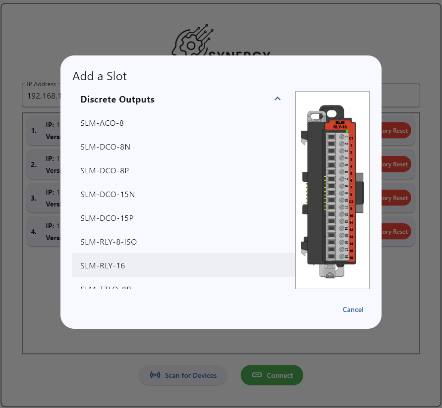 You can only create and configure modules that will be attached to the SLM-MX device. System settings such as network, IP address, etc. cannot be configured offline.